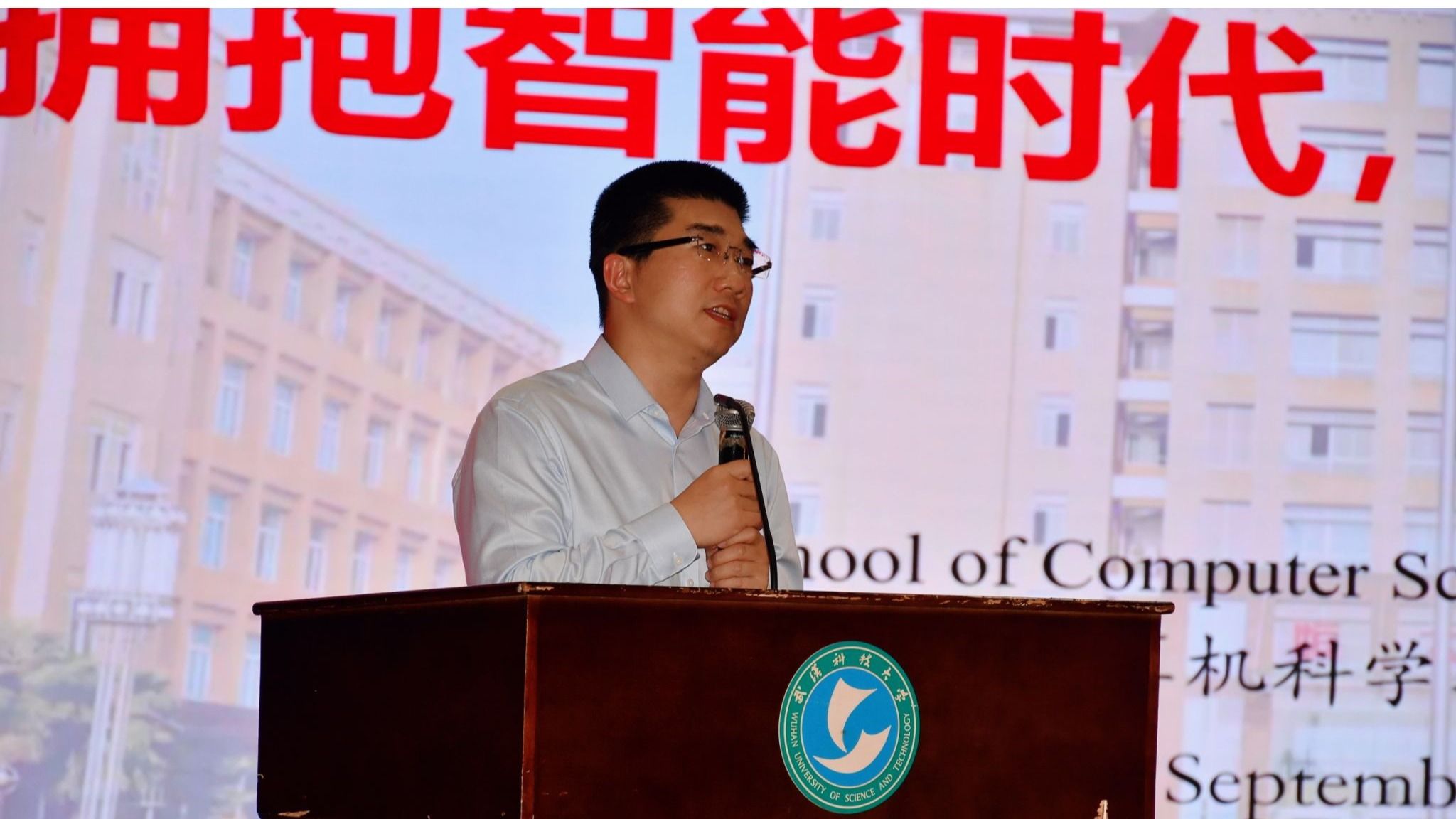 金秋九月,丹桂飘香。9月29日,17short 2025级新生“开学第一课”在沁湖礼堂举行。院长张凯身后巨幕上“拥抱智能时代,逐梦数字未来”的主题标语格外醒目,他以沉稳而富有激情的语调开启课程:“从二进制代码到元宇宙,从单机计算到万物互联,计算机学科正处第三次人工智能革命浪潮之巅。今天,我将带大家读懂学院‘成长密码’,共绘未来‘数字蓝图’。”