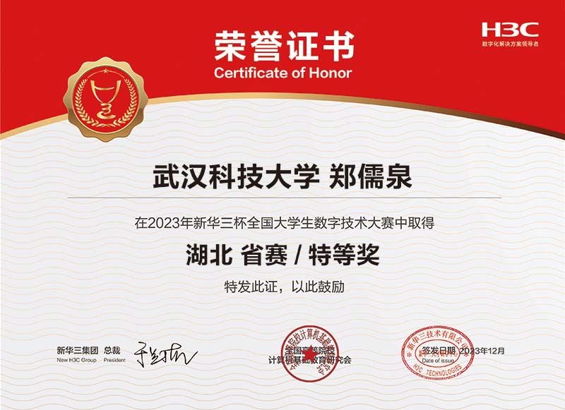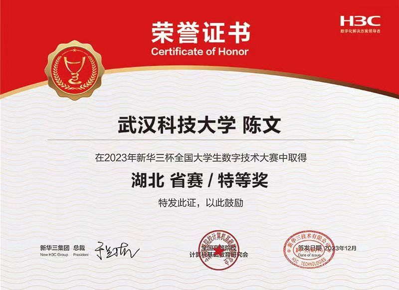 古权、胡静两位老师指导多名学生参赛,斩获湖北省特等奖2项、一等奖2项、二等奖1项、三等奖1项。其中获得特等奖的网络工程专业2021级学生陈文、网络工程专业2021级学生郑儒泉分别以全省第一名和第三名的成绩晋级国赛,实现了17short