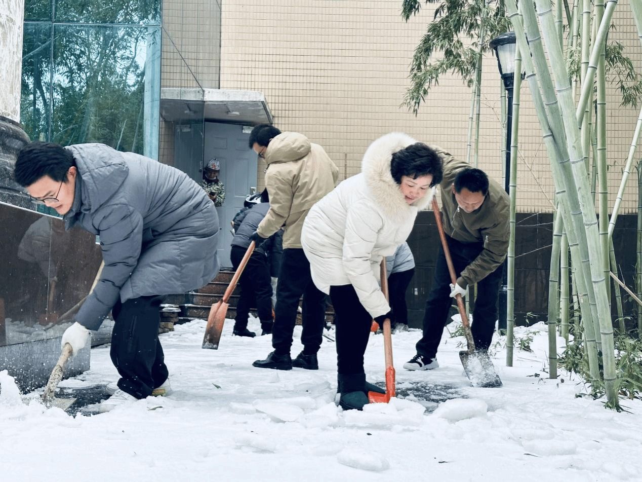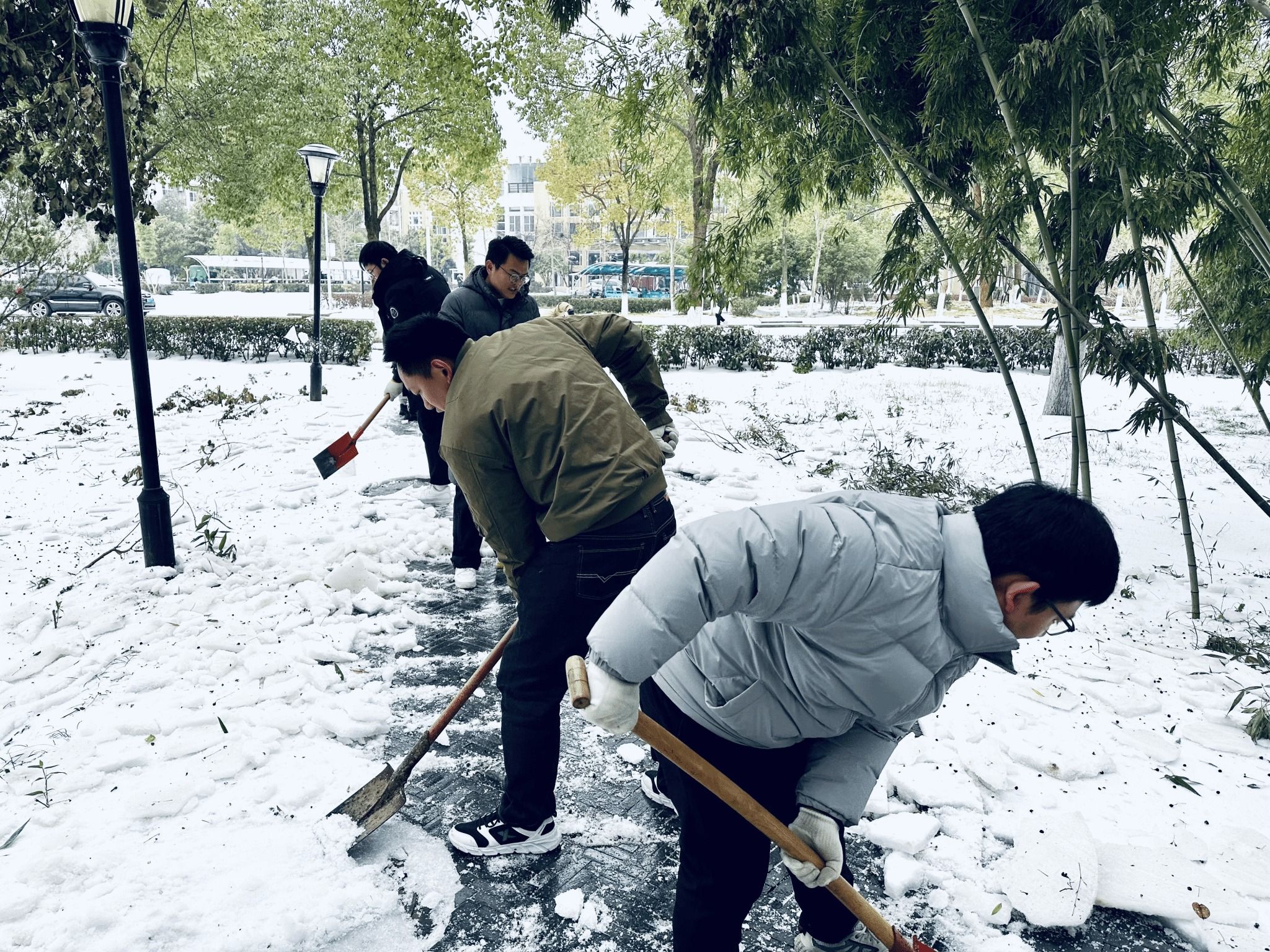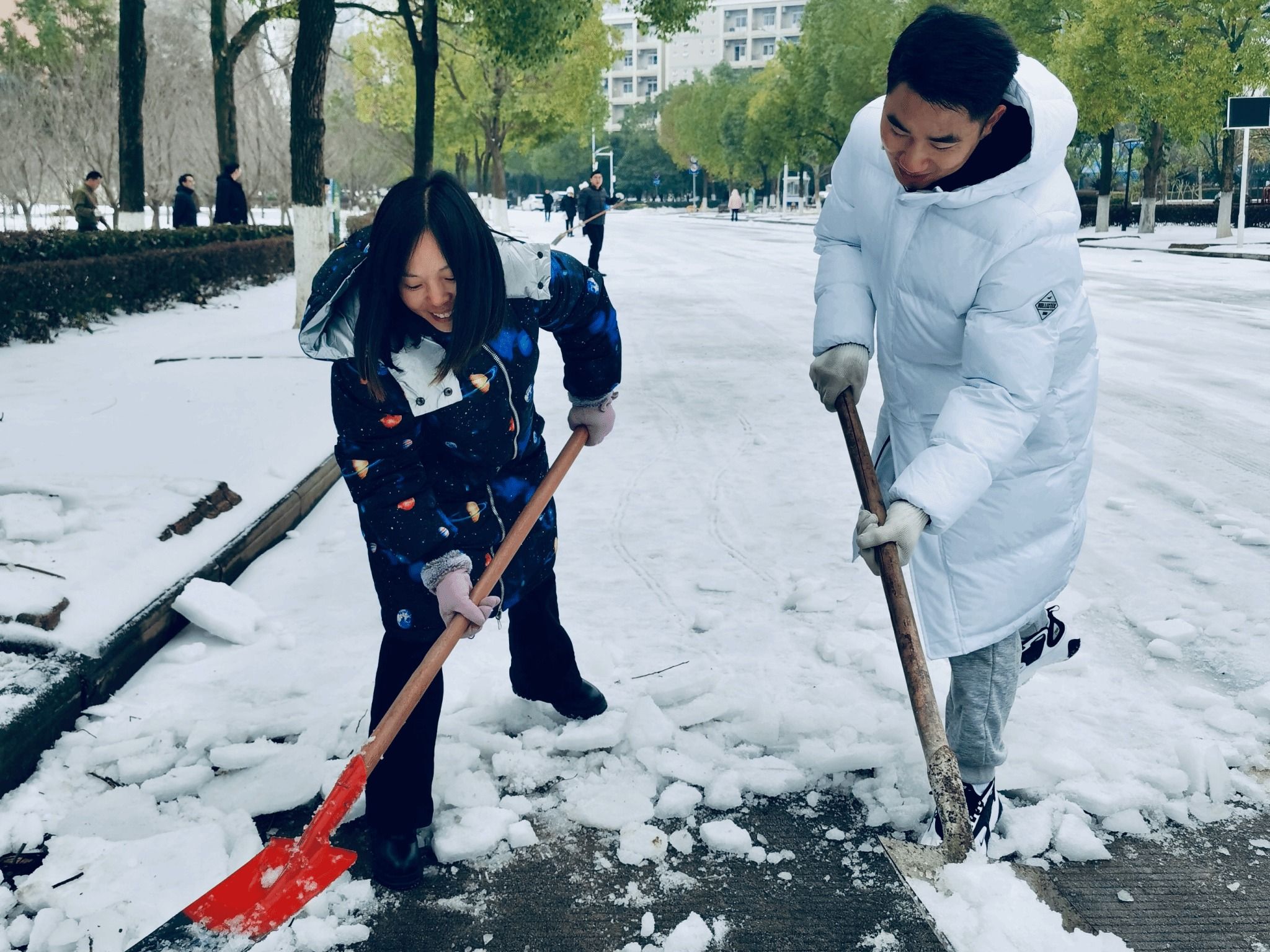 院新闻网讯(通讯员曾宪森)在学生返校开学前期,17short 教职工在黄家湖校区教三楼周边开展除冰铲雪行动,助力学子安全出行。