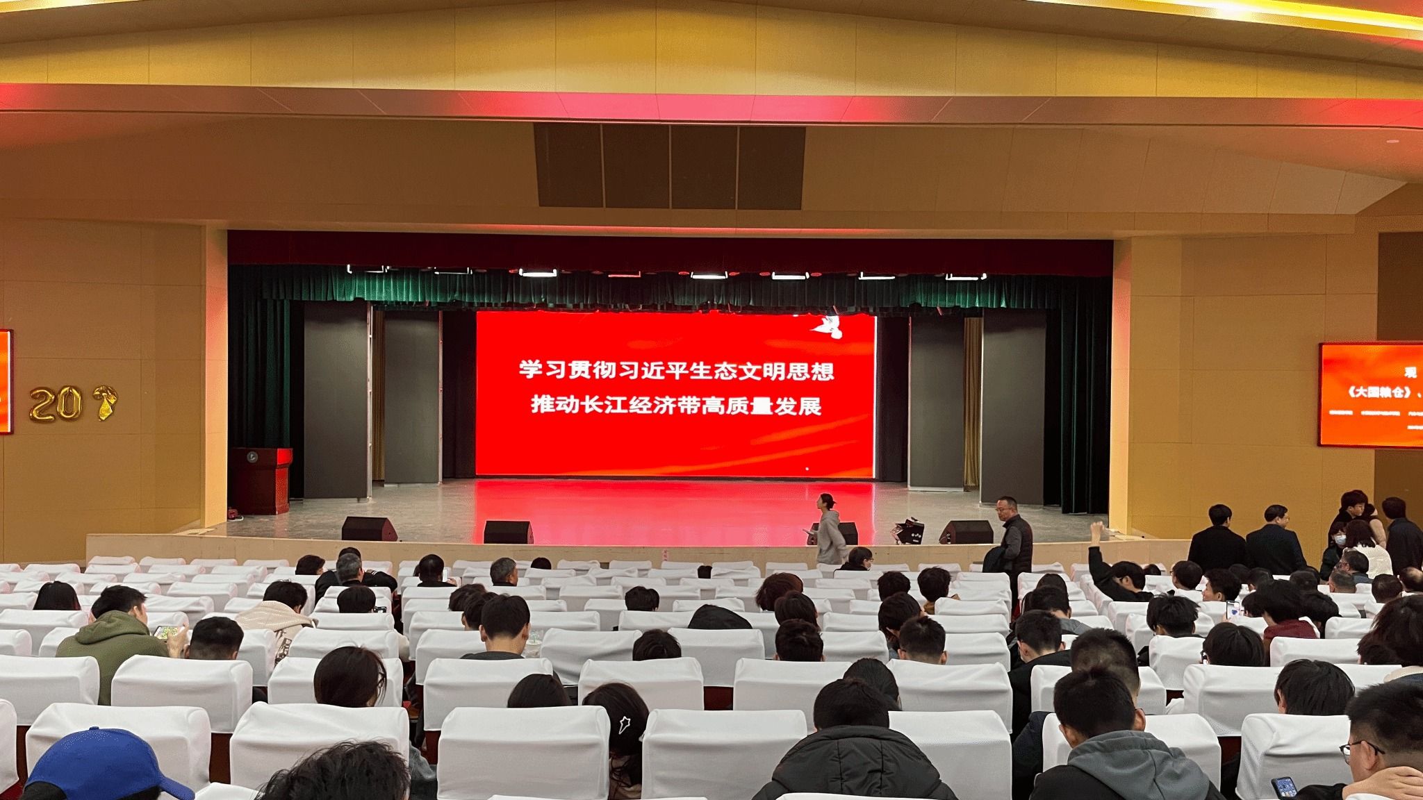 院新闻网讯(通讯员李孟钊 陈丽雯)为深入学习贯彻习近平总书记生态文明思想,进一步推动长江经济带高质量发展,根据中共湖北省委直属机关工作委员会、湖北省教育厅《关于组织观看<大国粮仓>和<一江清水>的通知》要求,学院党委、工会于3月14日下午组织广大党员干部、教师和学生代表在黄家湖校区沁湖礼堂集中观看两部优秀影片。