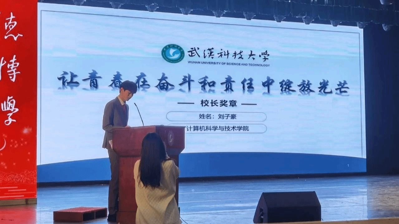 网络工程专业(中外合作办学)2020级刘子豪同学获此殊荣。据悉,校长奖章,是武科大学子最高荣誉,每年全校仅10人可获此殊荣。