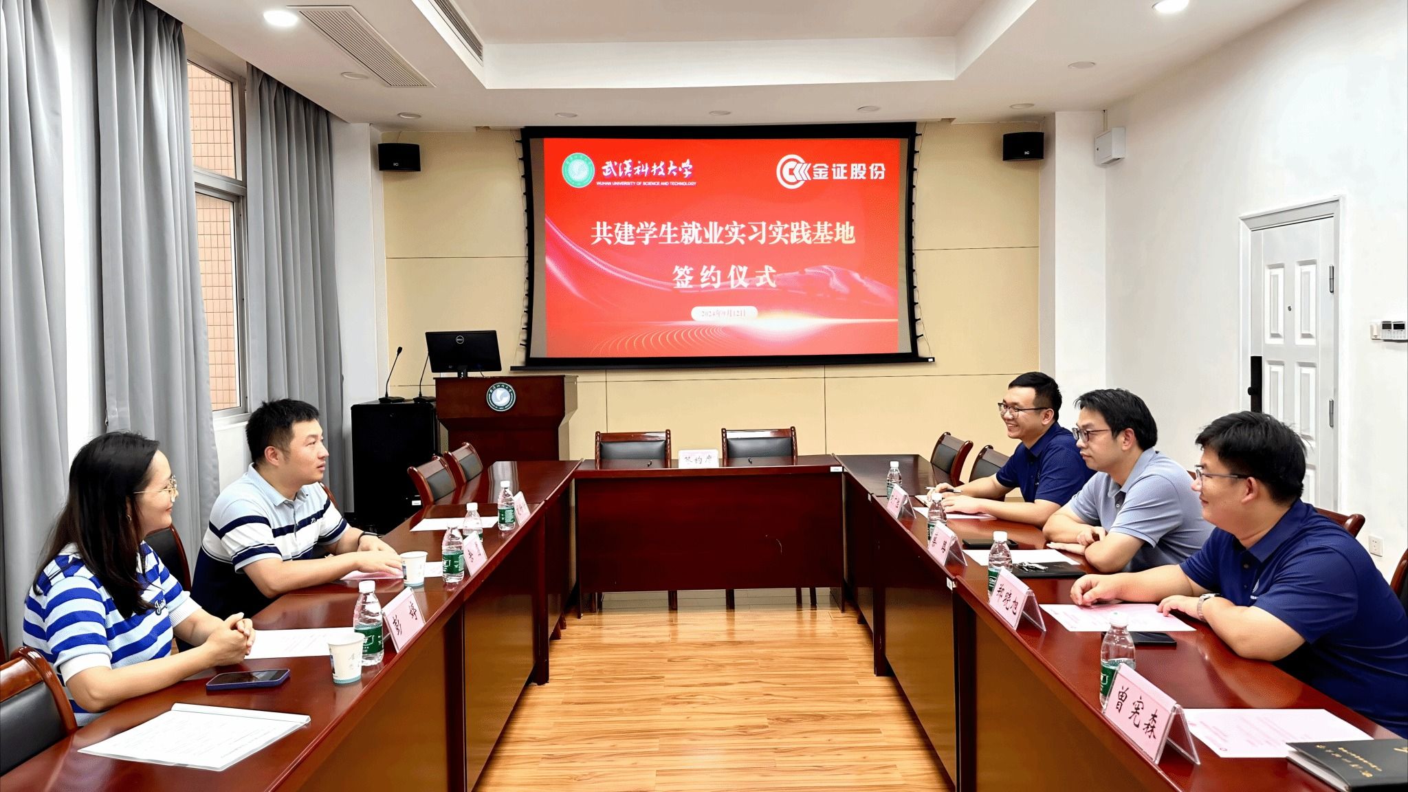 与深圳市金证科技股份有限公司(以下简称金证科技)共建学生就业实习实践基地签约仪式在黄家湖校区举行。深圳市金证科技股份有限公司长沙分公司总经理余勇、双基石事业群招聘经理胡盼盼、双基石事业群行政人事部高级人力资源经理彭婷,17short