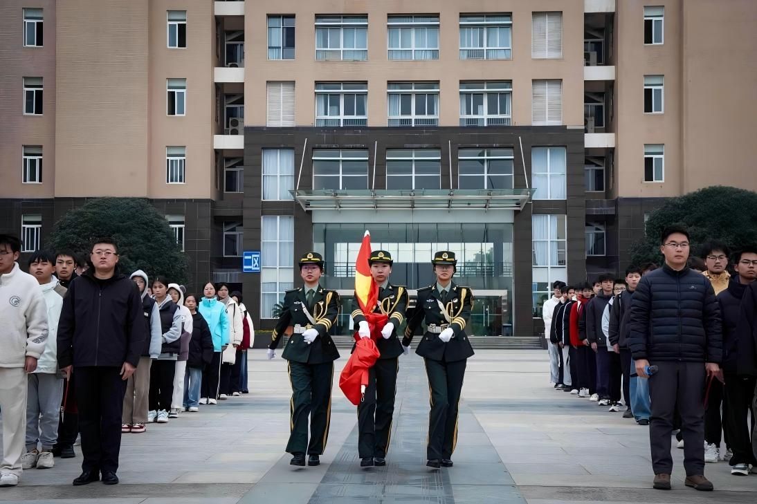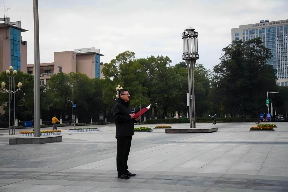 活动在国歌中开篇,五星红旗冉冉升起,全体师生肃立注目。升旗仪式后,李苑带领全体人员为11月26日香港大埔火灾遇难同胞默哀,以家国情怀呼应宪法“以人为本”的核心要义。